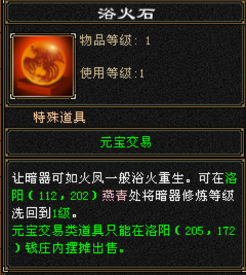 如果对于暗器的最终星级不满意,可以利用浴火石来重置暗器修炼等级,通过重新的升级分配,就有概率获取更高品质的暗器。当然也有可能会更低,可能需要进行多次重置尝试,来获取最终心仪的暗器品质。