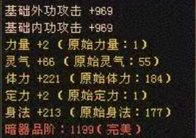 暗器的星级,是由暗器的等级和原始属性总和所决定的,由于修炼等级提升所分配的原始属性为随机分配,所以根据最终原始属性的多少,就会出现不同星级的暗器。根据玩家们大量的总结测试,暗修炼升级的成长系数公式如下: