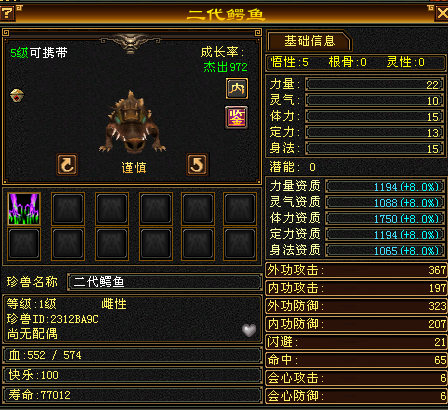 总体来讲,完全体宝宝打造的选择逻辑是:完美成长率+较高资质+合适的性格+合适的珍兽套装。