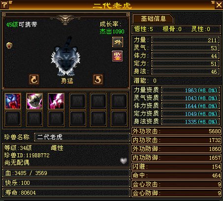 完成最初的江湖成长期后,常用的珍兽推荐当前等级内比较强力的宝宝,来进行完全体的打造。